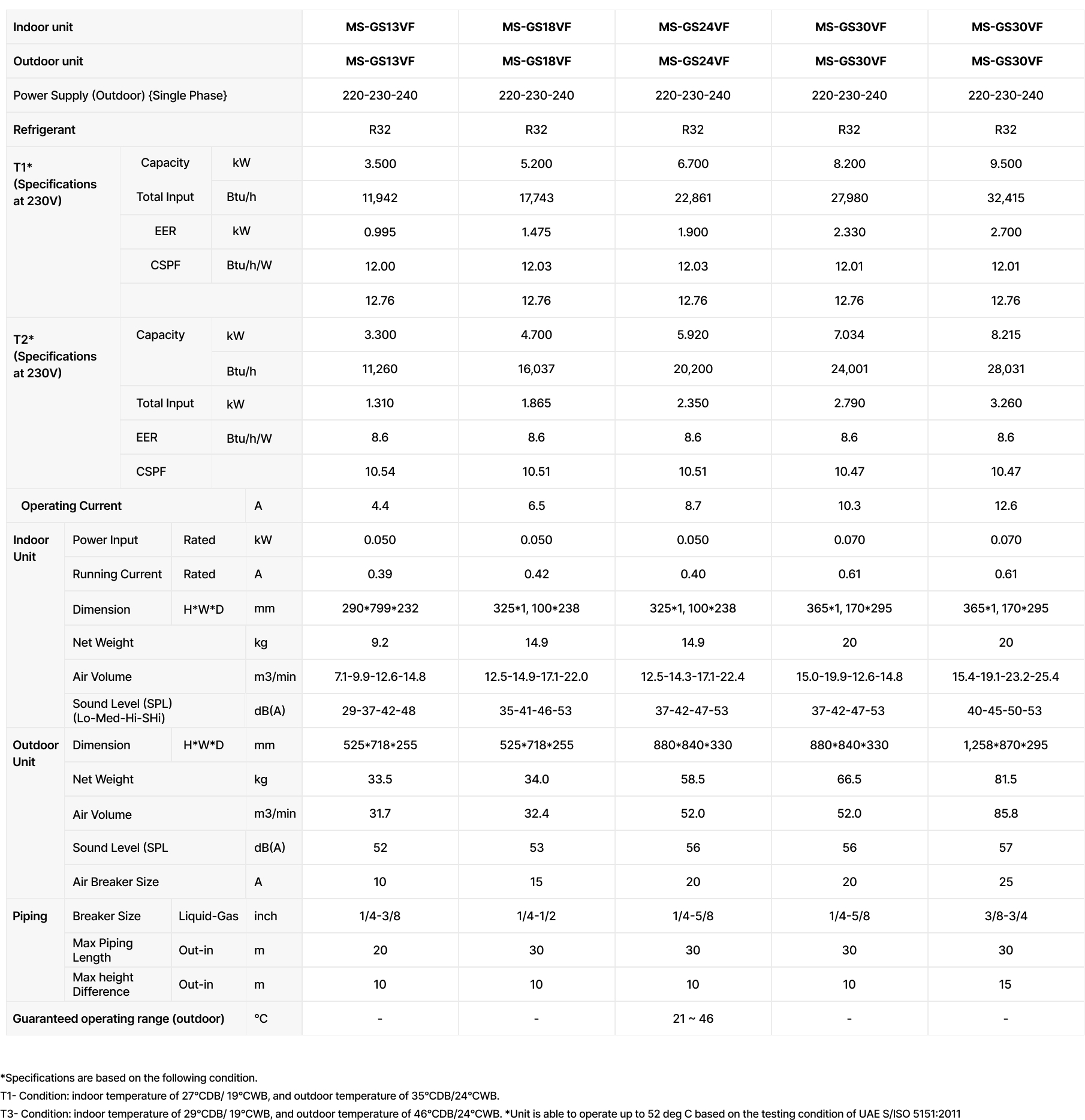 *For UAE Models (-AE)(Specifications at 230V)